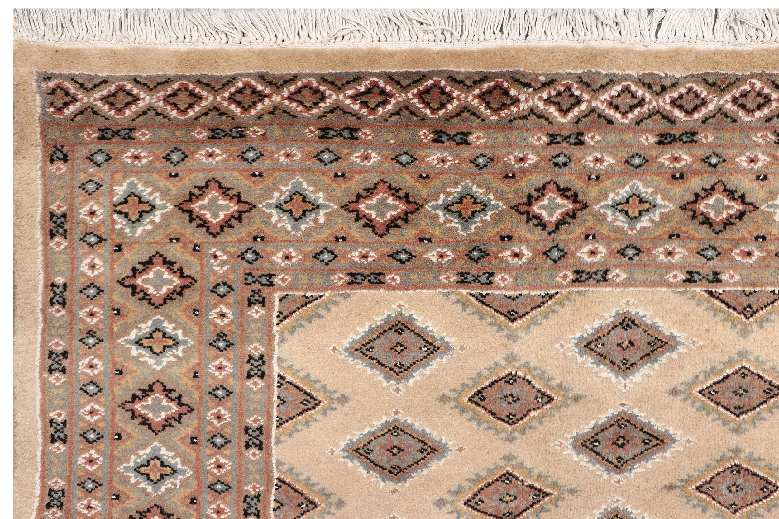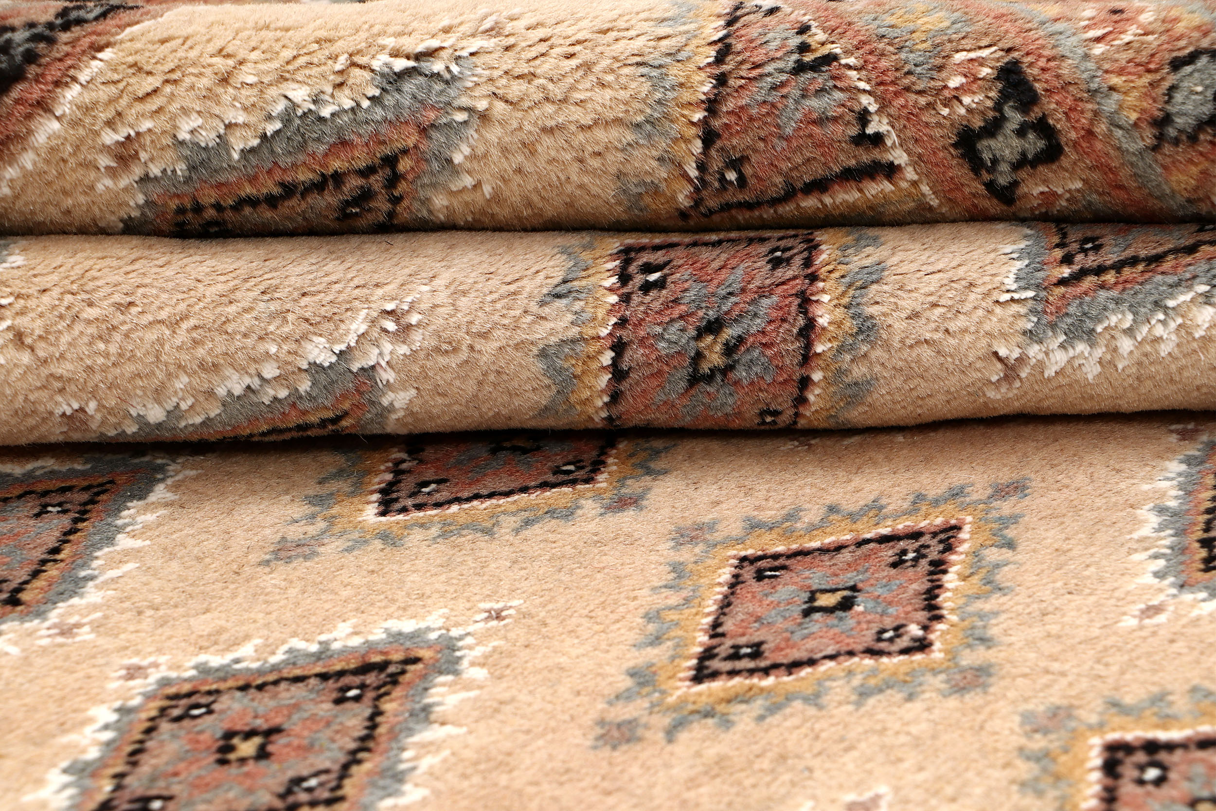 Many modern “Bokhara” rugs (especially Pakistani Bokharas) feature: